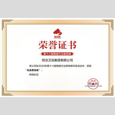 獎 項:2019年度最佳合作伙伴——恒潔衛浴