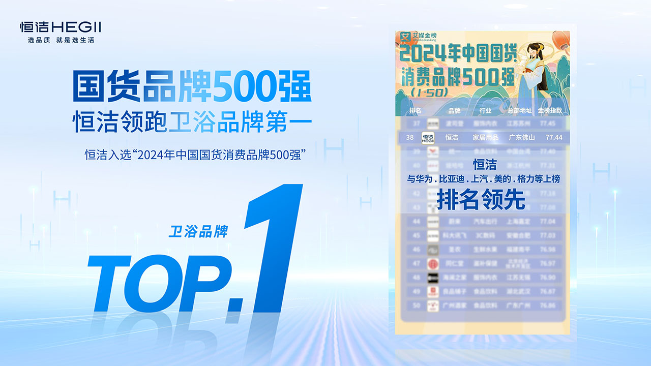 恒潔入選“2024年中國(guó)國(guó)貨消費(fèi)品牌500強(qiáng)”